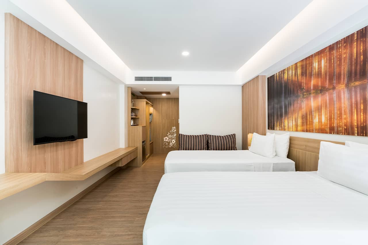 Deluxe Building room is out new guestroom featuring modern aesthetics complemented with the rustic Cabana charm. Rooms are equipped with a comfortable sofa, flat screen tv, full toiletry set, hairdryer, bathrobes, tea, coffee set and more. Everything you need to make the most of your tropical island getaway. By blending thoughtfully selected amenities with earthy colours and textures, each room is delightfully unique, and can comfortably accommodate up to 3 persons with a roll away bed.