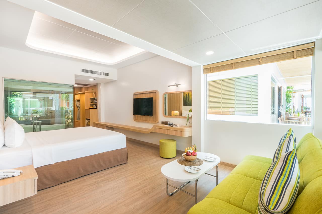 Our Deluxe Villa welcomes you into 40sqm of your very own island paradise. Spacious, lofty and tranquil, each villa is designed with luxury and relaxation in mind. Adjustable daybeds, quality linen on king sized beds, elegant combination of rain showers and a beautiful bathtub, digital TV and more. With high ceilings and private balconies, you may find it hard to leave the comfort of our Deluxe Villas, but when you do, you will find that the gorgeous beachfront is merely a few steps away.