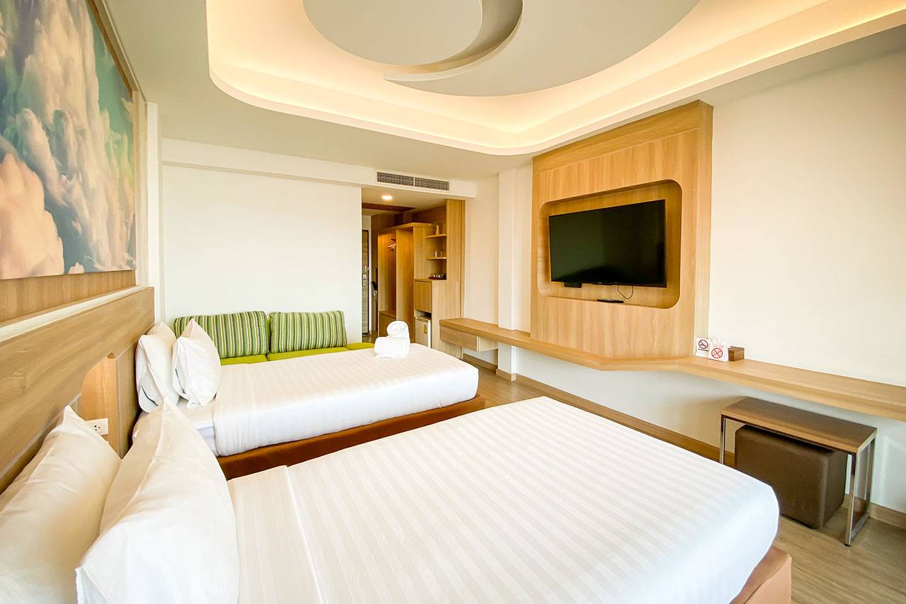 Introducing our 67 sqm two-bedroom family suite inspired by the Sun and Moon shining into your room. Whether with family or friends, our rooms can accommodate up to 2 adults and 2 children (under 12 years of age) with a queen size bed, twin single beds, separated bathroom and shower room. Specially designed for big family holidays, you may find that it is just as enjoyable spending time in your suite with your loved ones as compared to outside. Enjoy the gorgeous views of both sea and lush gardens from your private balcony.